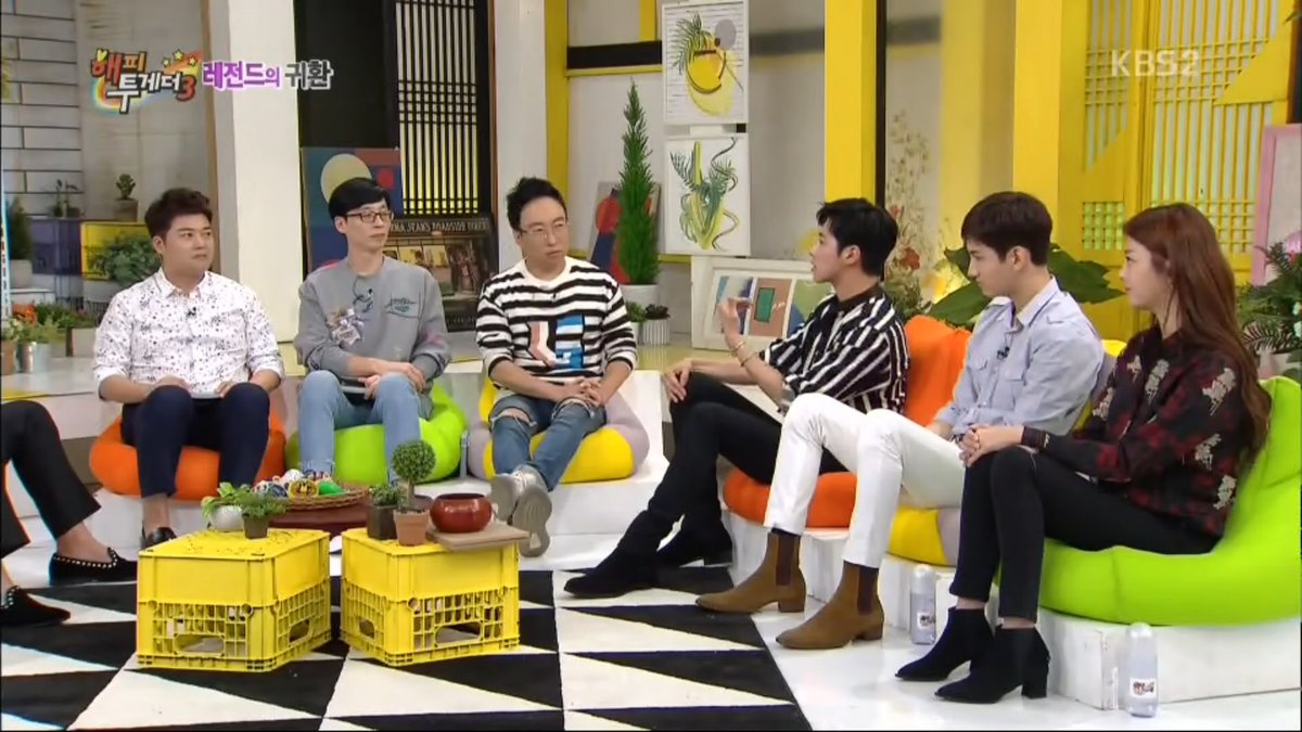 韓国で5日に放送されたKBS 2TV「ハッピートゥゲザー3」は、秋夕(チュソク:日本のお盆にあたる韓国の祭日) 企画でイ・スンチョルと東方神起が出演した「ヘトゥドン-レジェンドの帰還」特集と神話(SHINHWA) のミヌとアンディ、Fly To The Skyのファニとブライアン、godのパク・チュニョン、ソン・ホヨン、Red Velvetのジョイとイェリが出演した「伝説のチョドンアリ-私の歌を歌って:レジェンドアイドル特集第2弾」で構成された。