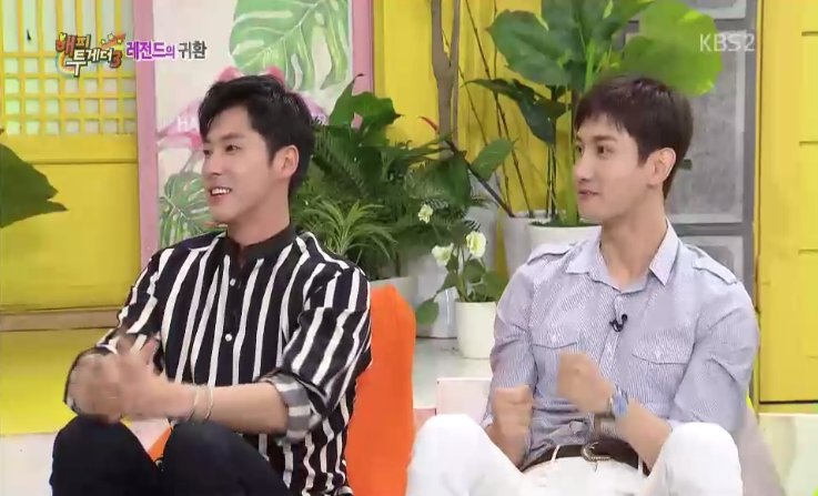 ユンホとチャンミンは本格的に性格の違いをベースにした興味津々なエピソードを打ち明け、視線を引きつけた。ユンホは入隊中、特級戦士だったと明かし、視聴者を驚かせた。さらに彼は「職業軍人にならないかという提案もあった」とし、「チャンミンが除隊するまで時間があるから、専門下士になってみないかという提案があった。芸能人初の専門下士というタイトルに心が揺れて、事務所と相談したが、“そこまでする必要があるのか”と止められ、除隊した」と話した。これを聞いたチャンミンは「僕は、ただの戦士でもありがたい」と手を横に振り、爆笑を誘った。
