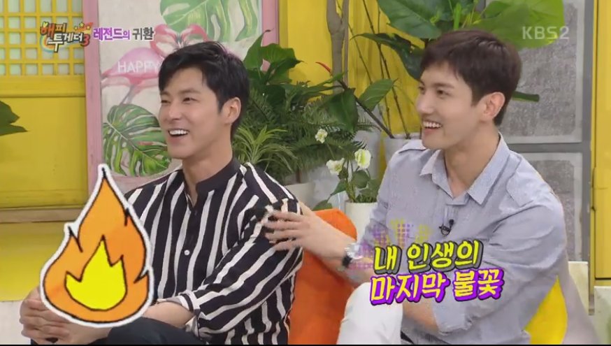 ユンホはSM内でアドバイスマニアーだの話でソン・ホジュンさんにもアドバイスをしてという話でMCたちが一体どこまでなんだアドバイスの範囲が、なら自分達にもしてみるとユンホにwwwユンホがスンチョルにこれからもお元気で活動も長く。。というとスンチョル、俺をSMに連れでっけ、っとww
