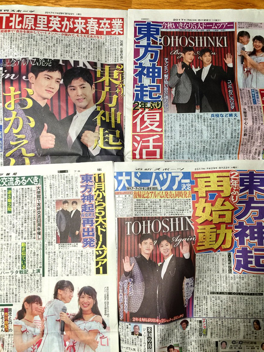 東方神起 再始動アジアプレスツアーinJAPAN記者会見で司会の任務を授かりました。本番前チャンミンと久々に再会し笑って話したwユノとはどのような雰囲気で記者会見をするか相談し、本番は東方神起の2人とアイコンタクトをしながらやらさせて頂きました