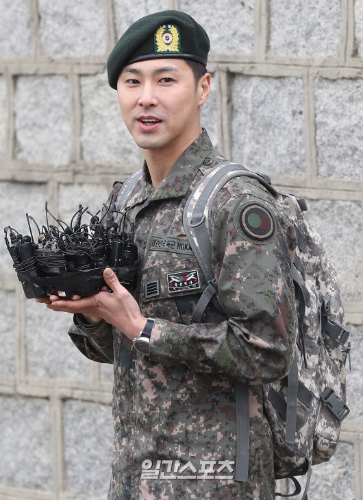 [記事写真]東方神起、ユノ・ユンホが20日午前京畿道(キョンギド)楊州(ヤンジュ)市陸軍第26機械化師団で21ヶ月間の軍服務を終えて満期転役した。