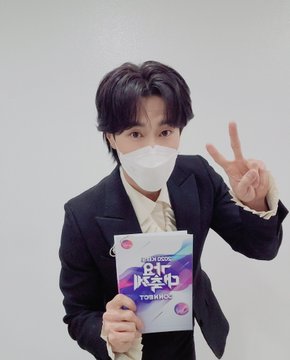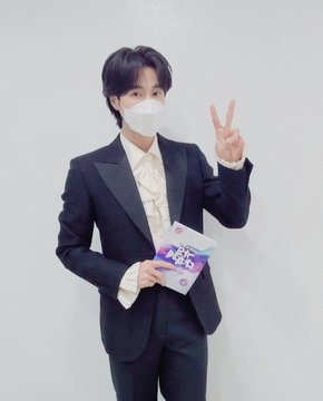 写真の中でユンホは正装でマスクを着用し、Vサインでカメラを見つめており、「2020 KBS歌謡祭」と書かれた本番用の台本を手にしている。