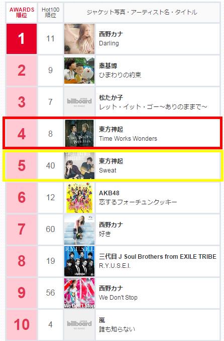 2014 Billboard JAPAN Music Awardsを発表!東方神起4,5位