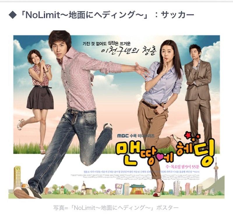 2009年に韓国で放送された「No Limit ~地面にヘディング~」は、東方神起のユンホが俳優デビューを果たしたドラマです。ユンホはサッカーの実業団チームに所属するチャ・ボングン、またスポーツエージェントとしてユンホを訪ねてくるカン・へビンをAraが演じました。ユンホは体を張った演技で情熱溢れるチャ・ボングンを表現し、ソウルワールドカップ競技場で行われたサッカーの試合のシーンの撮影には数千人のファンが参加、優れた運動神経を見せています。