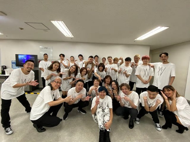 写真はステージ裏にてポーズを真剣に確認する私たちの後ろ姿笑
