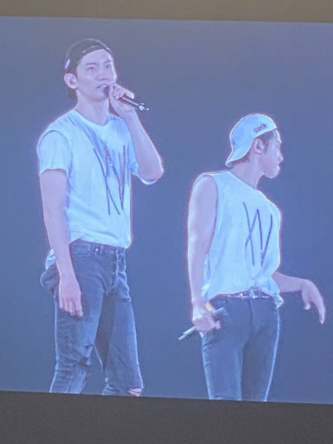 アンコールMCでいつもの上着脱いで、チャンミンは黒、ユノは白のXVロゴとTOHOSHINKIロゴがついてるキャップ帽被ってた....追加公演のグッズですか?