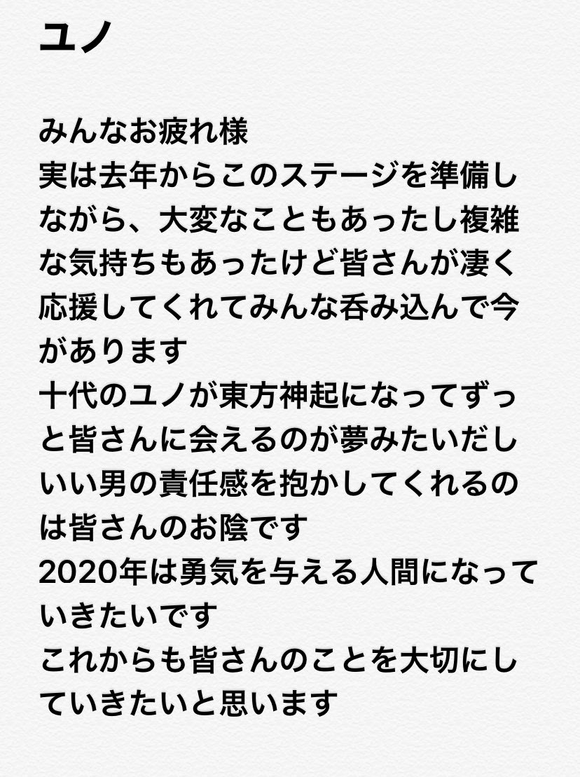 ユノが2020年はただ情熱だけじゃなくて勇気を伝えていきたいし、ここにいるみなさんと作っていきたいって。みなさんを大切にしていきたいですって。