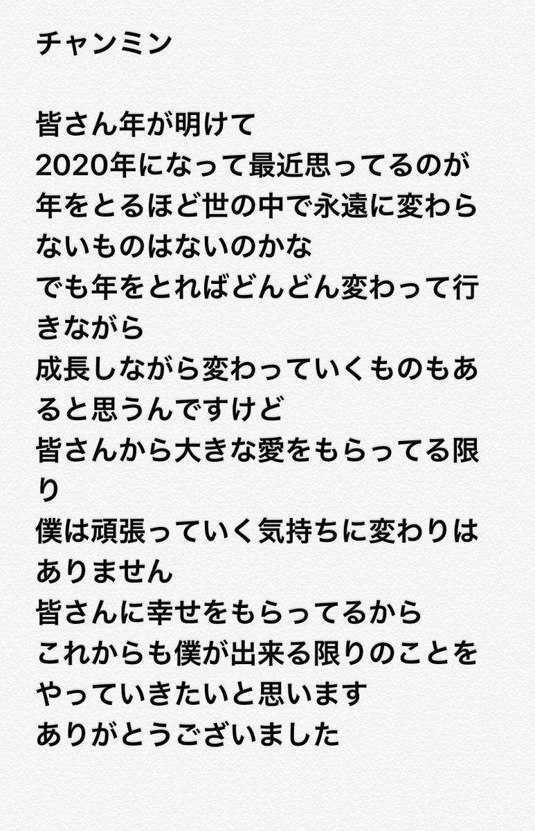 みんなチャンミンの最後の挨拶の前静まり返りすぎぃ水を打ったように静かでみんな固唾を飲んで見守ってて…むっちゃ緊張したじゃんかー