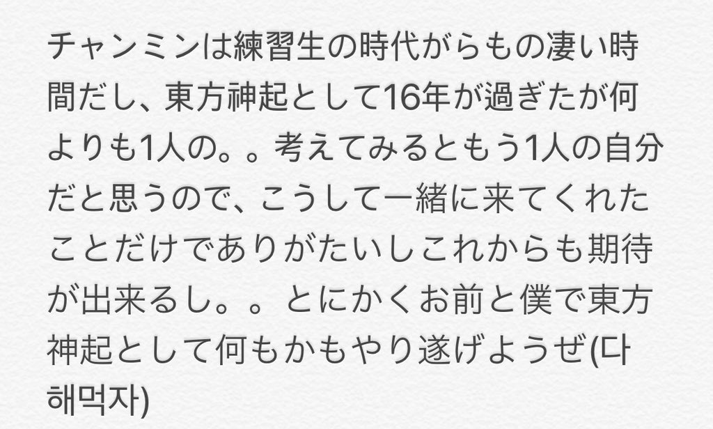 ・ユノが「僕最近インスタ載せてないでしょう?感情的に色々あって…。」って。でも色々撮り溜めてくれてるって。お気に入りの歌も歌って上げてくれる的な事を言ってた。うん、急がなくて良いよ。ユティリテイが上げたくなった時にいつかまた上げてくれれば良いよ。