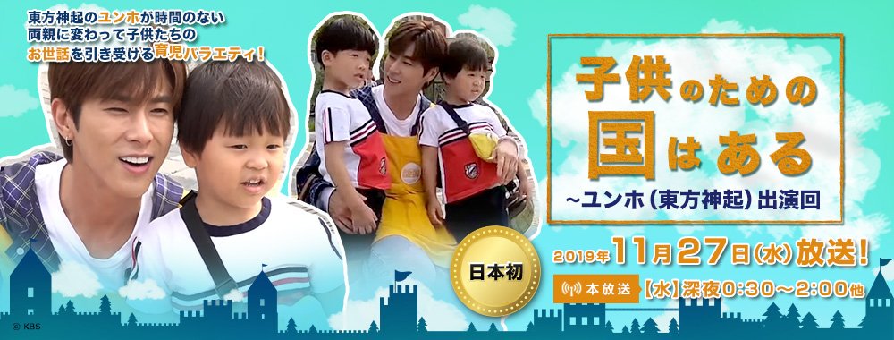 日本初放送子供たちのお世話を引き受ける育児バラエティに東方神起のユンホが出演した回を放送