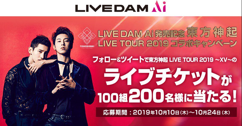東方神起 LIVE TOUR 2019 ~XV~のツアーチケットが抽選で100組200名様に当たる