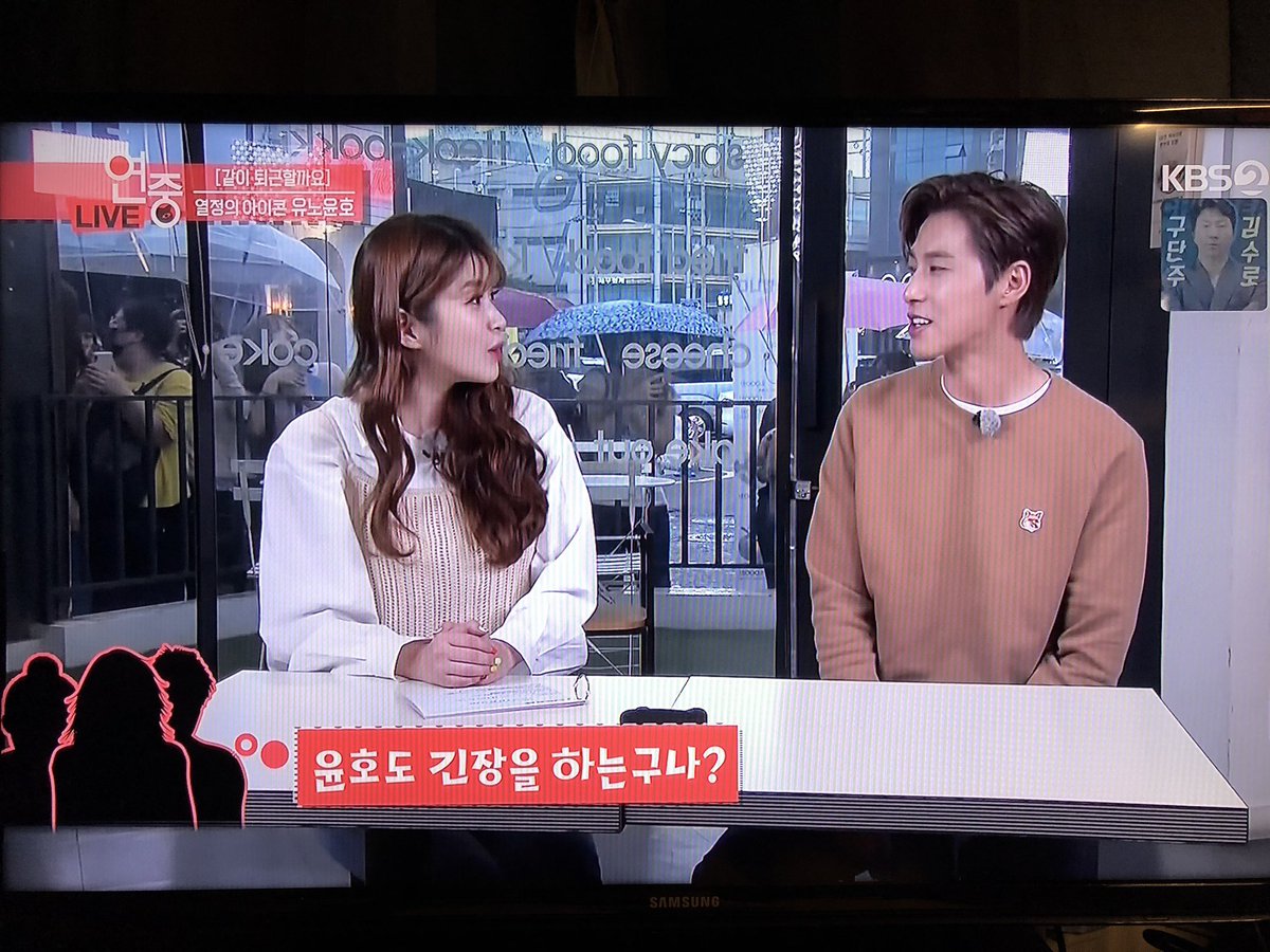 ・ユンホがソロデビューすると聞いは周りの知り合いたちはお祝いもしてくれたが、ユンホも緊張するんだ、って反応もあったと明かすユンホ。KBSで初収録の時は緊張で手が震えたと(放送に映る)