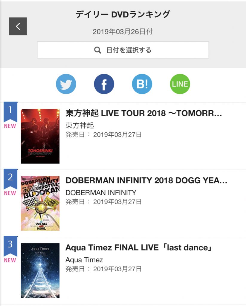 東方神起、日本ライブDVD・BD、オリコン・デイリーランキング4冠王