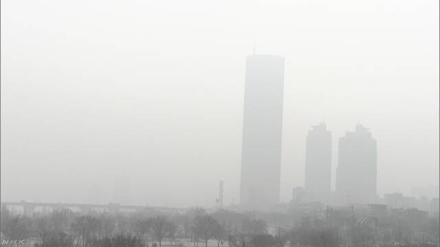 韓国では例年、春先に中国大陸から来る黄砂などの影響で視界が悪くなることがありますが、ことしは年明けから大気汚染がたびたび起きていて、5日もソウルは空が白くかすみ、ビルの上層階もほとんど見えない状態になりました。