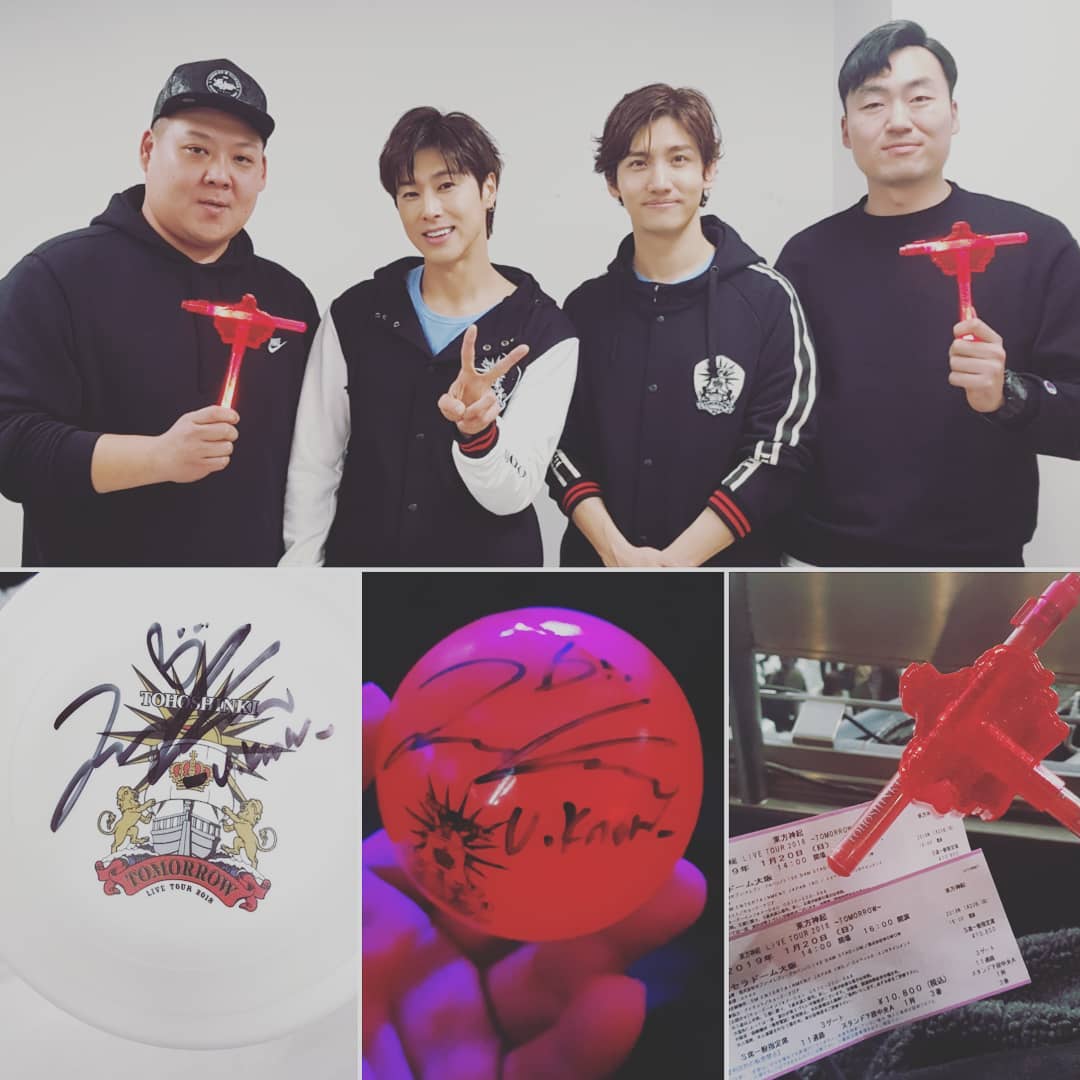 そしてすぐユンホオッパのトロッコが来てチャンミンオッパのご両親をみつけて挨拶した後、サインフリスビーを投げた。フリスビーは無事チャンミンオッパのお父様に渡されて、お父様はあちこち確認した後大事に内ポケットに入れた。始めは入りきれなくてまた出したけど