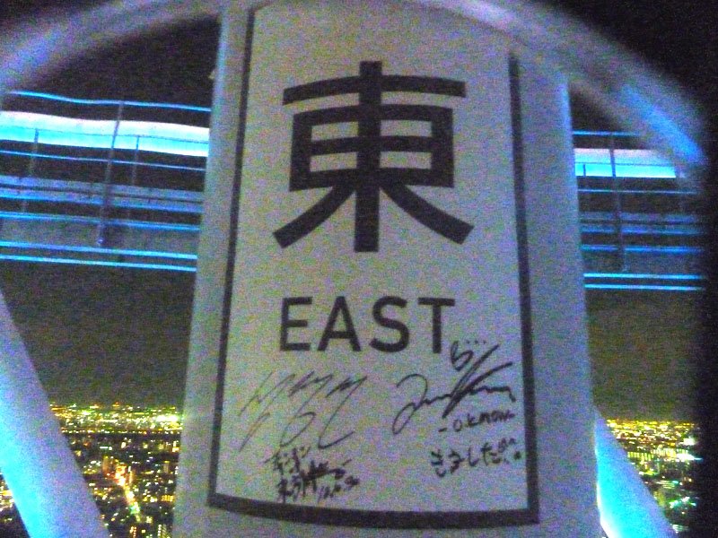 2018/10/30 夜、「スカイツリーテラスツアー」(19:25の回)に行ったら、鉄骨の「東」表示の下に、東方神起の直筆サインがありました。スタッフさんによると、「さっき来られました」とのことでした