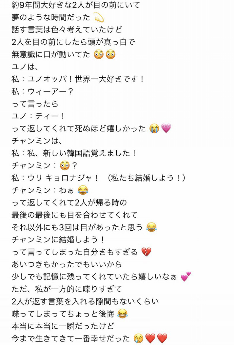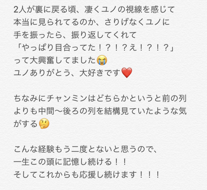 ・21日札幌初参戦❣️CD購入でミーグリ当選❣️チャミには「あなたの声が好きです」ユノには「あなたの為に今日宮城から来ました」とハングルで❣️☺️チャミからは「ありがとうございます」ユノからは「え!本当ですか大変でしたね」完璧におちた