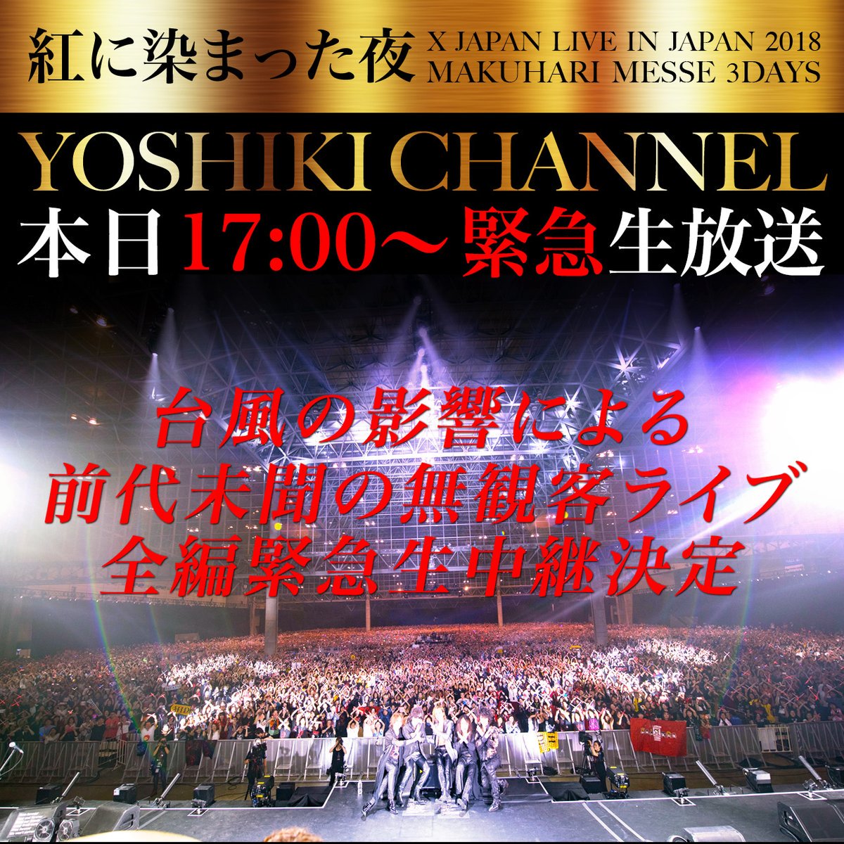RT@YoshikiChannel【本日17時〜緊急生放送決定】#XJAPAN 33,000人ソールドアウトの日本公演 台風の影響で公演中止を発表。