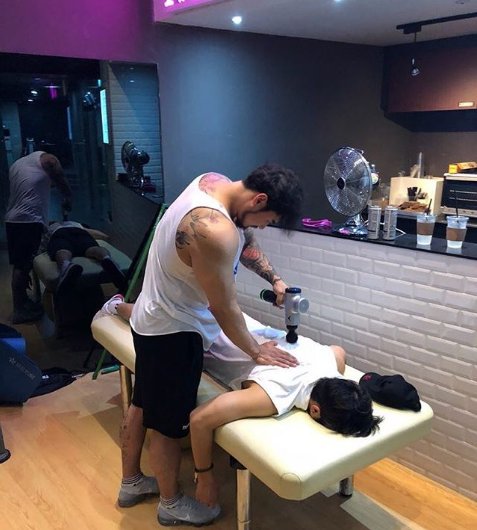 ユノがトレーナーにやってもらってるHYPERVOLTは、最先端のQuiet Glideテクノロジーを搭載した3段階の強力な振動によって、トレーニング前後の身体のトータルケアや筋膜リリースに最適なアイテム