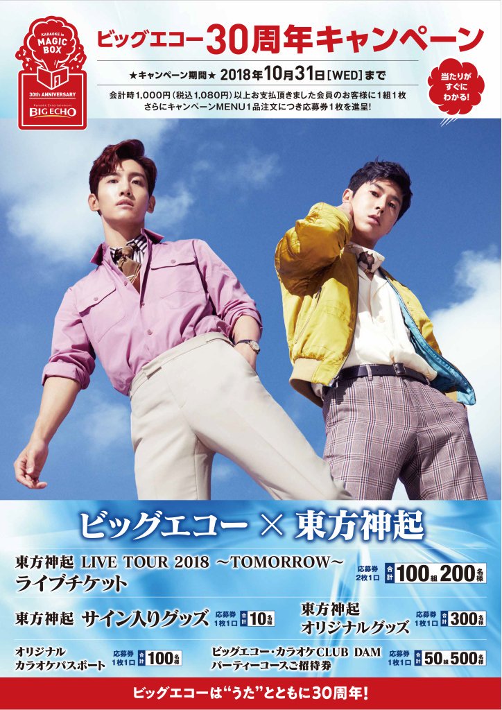 大人気デュオ #東方神起 とコラボして、「#ビッグエコー30周年キャンペーン」第2弾を8/23から10/31まで実施