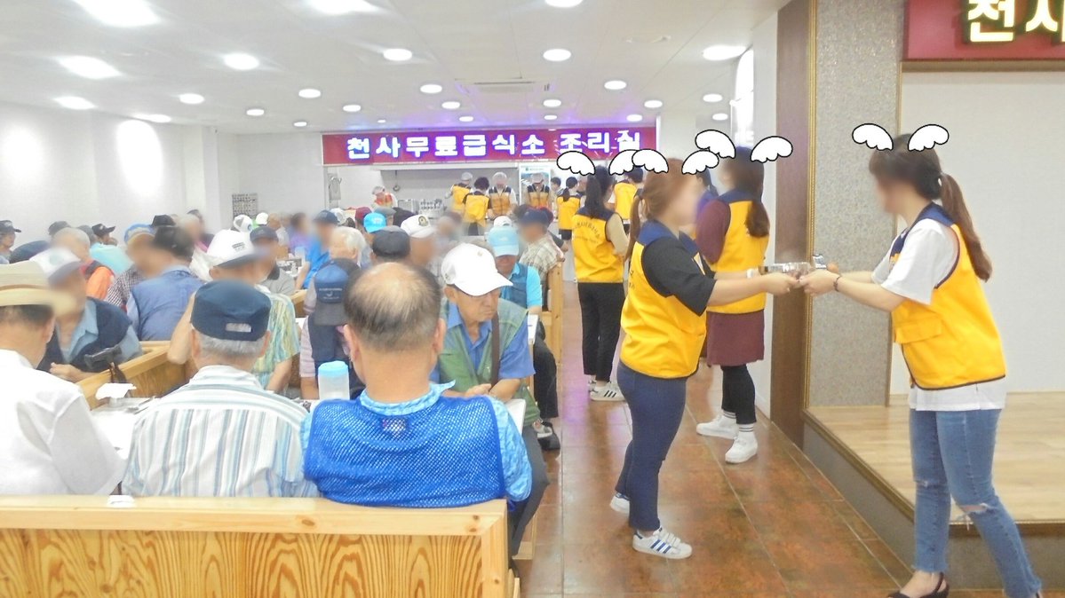 天使無料給食所仁川(インチョン)富平(プピョン)地所で年配の方の給食準備および話し相手なって差し上げること活動をしました。