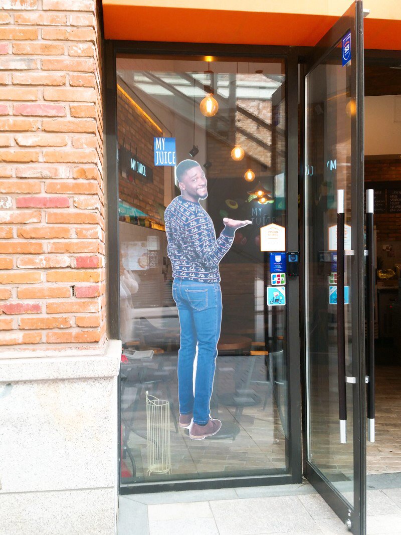 ドゥニアで共演しているガナー出身のタレント、サム・オチィリさんのお店らしいです。オチィリ오취리を오칠이オチルイという韓国式名前の愛称をつけて、呼ぶ時につける ア、を足して 오칠아に。