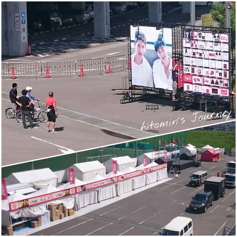 ユノ: 雨降って来ましたね、そんな情報なかったのに…みなさんぼうしをかぶつたり、タオルをはおったりしましょう