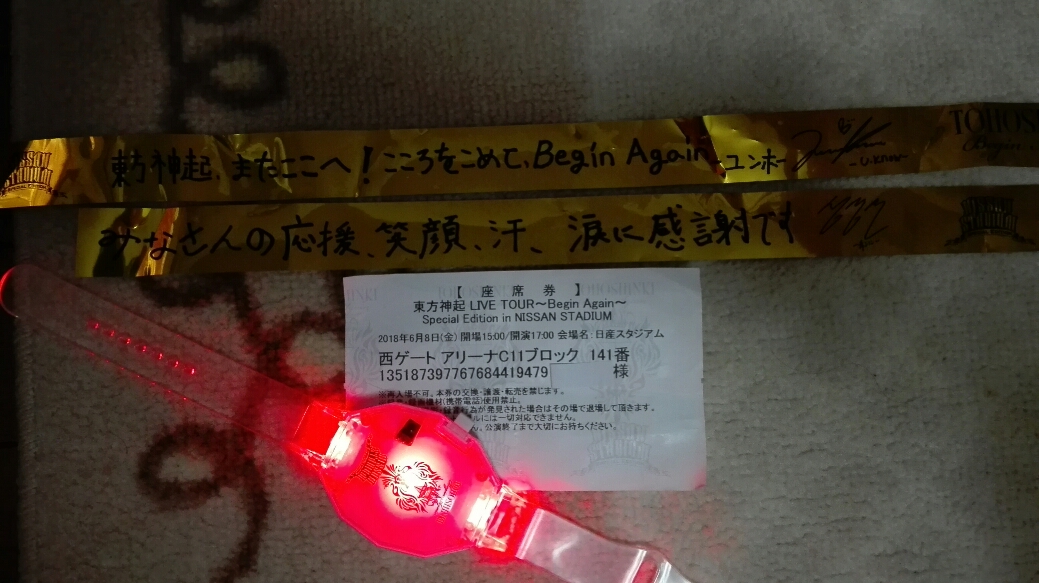 北スタンドの文字の演出があってBEGIN AGAIN TOHOSHINKI感動!