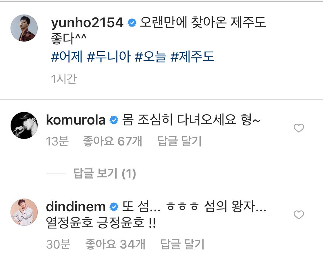 ユンホのチェジュのIGにドゥニアで一緒だったグォン・ヒョンビンさんと ディンディンさんがリプ