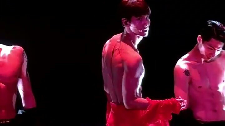 ・チャンミンのソロヤバかった。ソロ前のVCRがそれはもうエロすぎて絶対次チャンミンのソロでしょ、と思わせる。登場したチャンミンは赤のシースルー衣装。透けてるよー!!!!