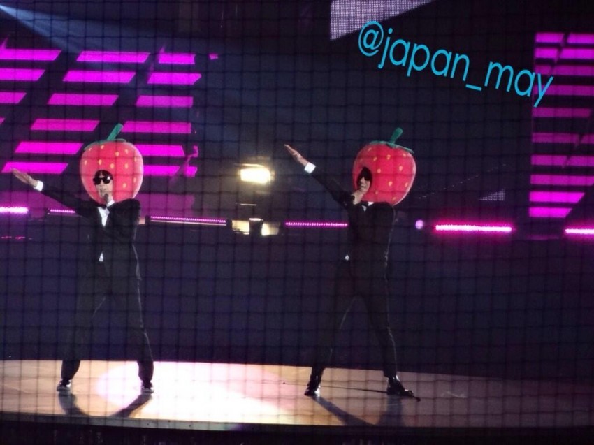 SMT序盤からギュライン投入で私のライフは早々に0になりましたw大きなイチゴの被り物を頭に被り、スーツでビシッと決めたギュとチャミがゆずの「いちご」を熱唱しながら途中でサングラスかけながら、おでこくっ付けながら、わちゃわちゃ絡みながら熱唱してました\(^o^)/超美声w
