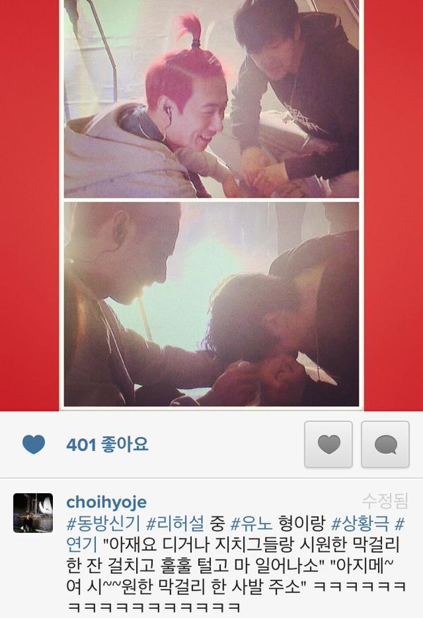 激しいリハで楽しい寸劇(笑)・・・ユノの方がヒョンだそうです